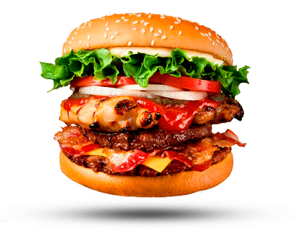 Dos jugosas carnes 100% de res perfectamente sazonadas y cocinadas al punto, cubiertas con queso cheddar derretido y generosas tiras de tocino crujiente. Todo esto servido en un pan brioche dorado, con lechuga fresca, tomate maduro, pepinillos y nuestra irresistible salsa especial. TODOS NUESTROS PRODUCTOS INCLUYEN PAPAS FRITAS