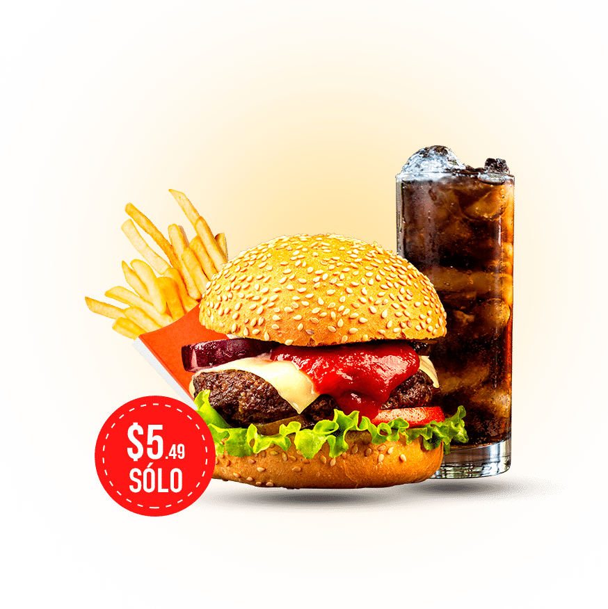 Jugosa carne 100% de res asada al carbón, con ese toque ahumado y dorado que solo la parrilla puede dar. Servida en un pan artesanal ligeramente tostado, acompañada de queso derretido, lechuga fresca, tomate jugoso, cebolla caramelizada, y nuestra salsa BBQ especial. TODOS NUESTROS PRODUCTOS INCLUYEN PAPAS FRITAS